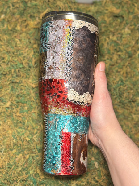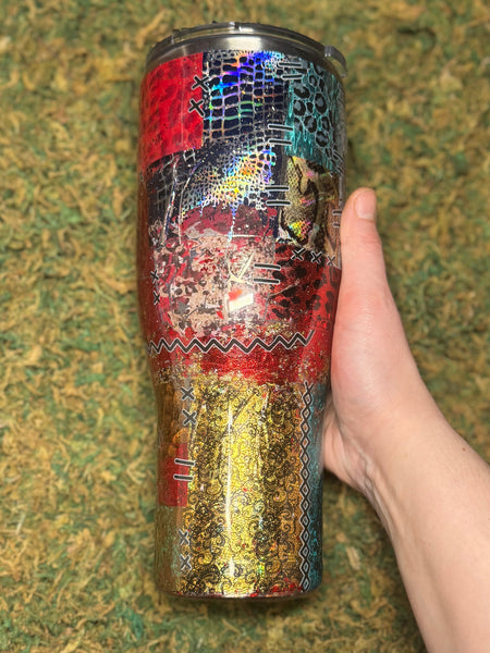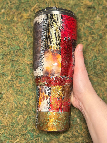 40 OZ tumbler. (Stainless Steel). Includes lid and straw. Suited for hot or cold beverages.