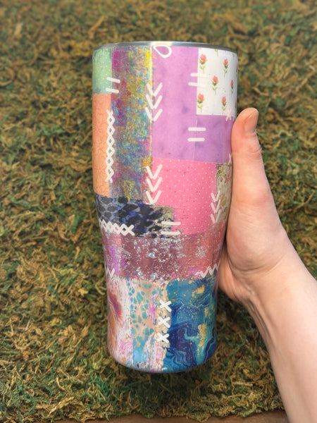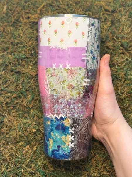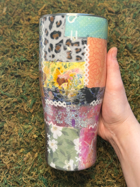 32 OZ coffee caddy tumbler. (Stainless Steel). Includes lid, insert, and reusable plastic straw. Suited for hot or cold beverages.