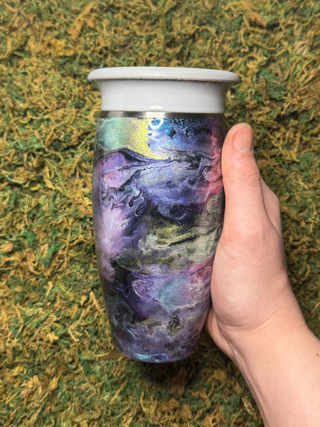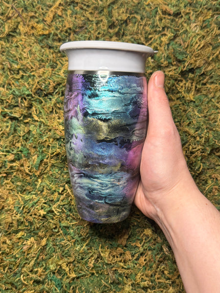 12 OZ 360 sippy lid tumbler. (Stainless Steel). Includes reusable plastic straw. Suited for hot or cold beverages.