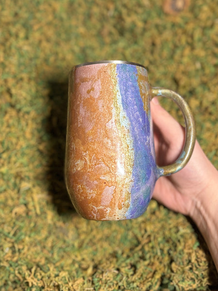 16 OZ mug tumbler. (Stainless Steel). Includes lid and reusable plastic straw. Suited for hot or cold beverages.