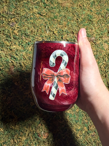 Pair of 12 OZ wine glass tumbler. (Stainless Steel). Includes reusable plastic straw. Suited for hot or cold beverages.